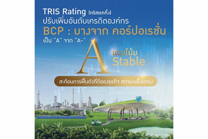 “บางจาก คอร์ปอเรชั่น” ได้รับการเพิ่มอันดับเครดิต “A” จาก “A-”