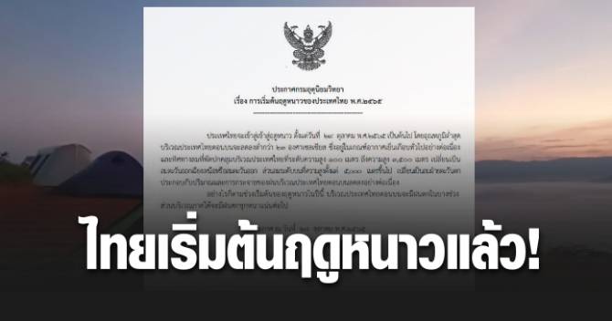 ประกาศไทยเริ่มต้นฤดูหนาวแล้ว! ภาคเหนือ-อีสาน-กลาง และภาคตะวันออก...
